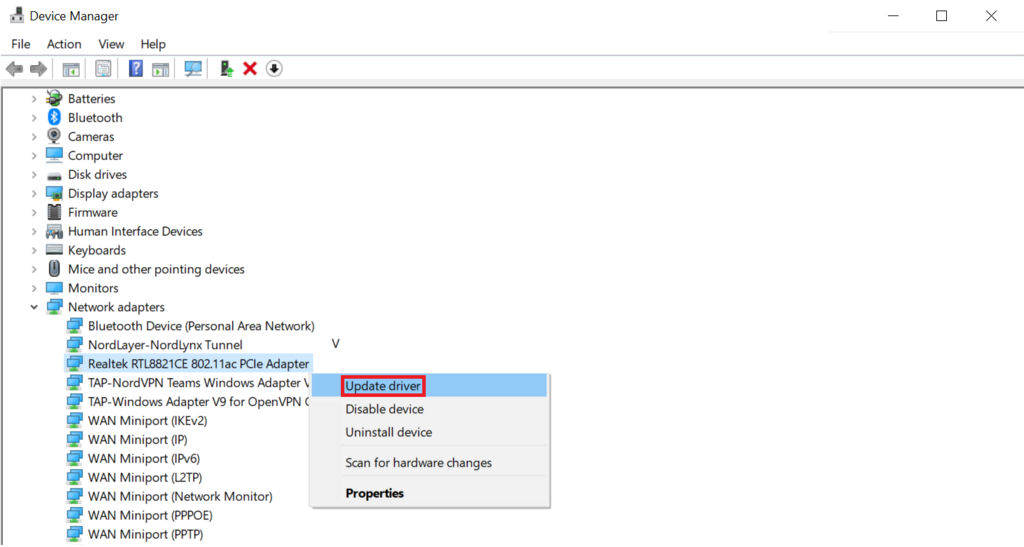 5. Update the Wi-Fi or Network Driver in Windows 10