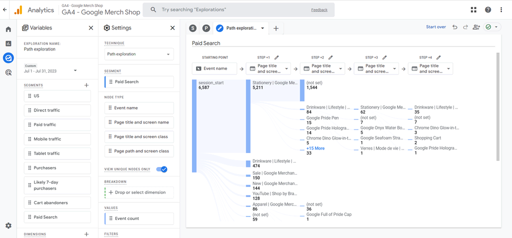 Path exploration is also excellent for focusing on specific user segments, like those from certain channels like Google Ads or social media. This will provide more refined insights to implement in your marketing strategy.