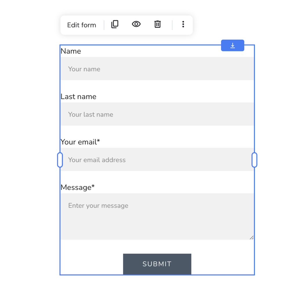 - Drag and drop your chosen element to the desired position on the web page. For this example, we’ll select the Contact form.