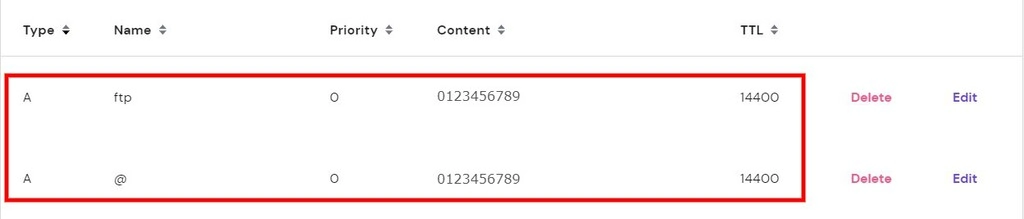 - Under the Type column, navigate to A and check your domain’s A record value under Content. Make sure it has the same value as the IP address given by your web host.