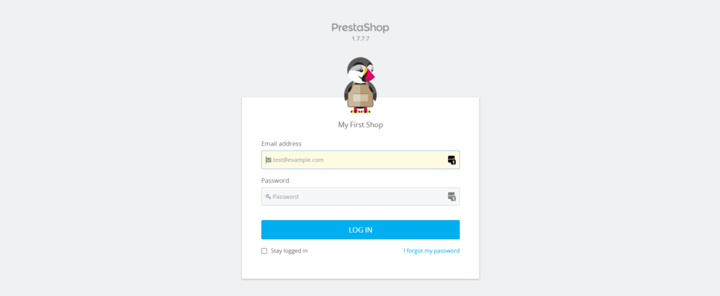 - Go to PrestaShop’s login panel and click I forgot my password.