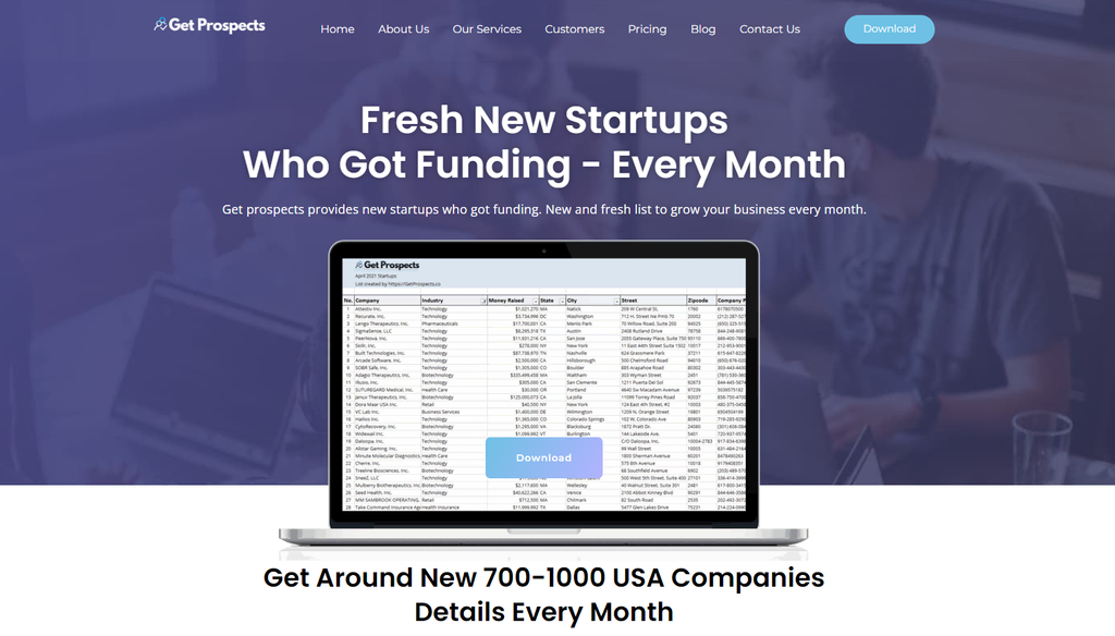 Then, research potential clients to whom you will send the offering letters. If you target an American new business, for example, use GetProspects to find prospects. It gathers recently funded startups’ data across the country – some of them even do not have a website.