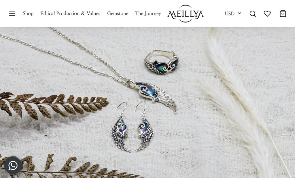To attract its audience, Meillya Jewelry’s homepage displays ethical production logos to demonstrate that the company produces fair trade products.