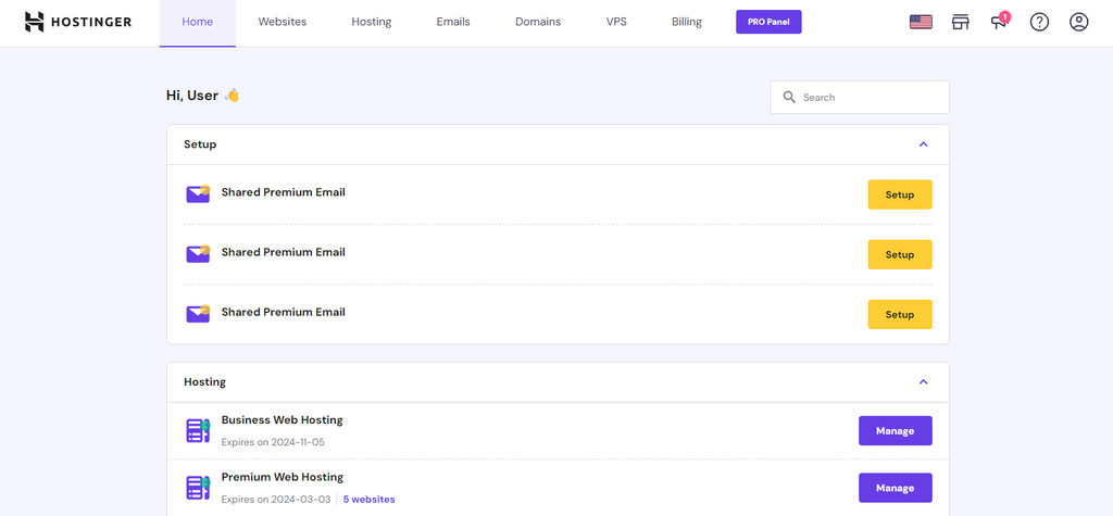 hPanel provides an organized and user-friendly interface, presenting essential tools and functionalities within easy reach. From managing domain settings to configuring email accounts and monitoring website performance, hPanel empowers you to take control of your online presence effortlessly.