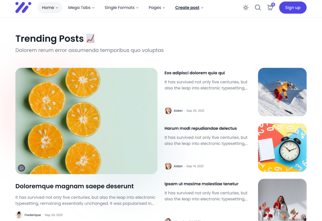 A magazine theme is designed specifically for sites within that particular niche. It typically includes a homepage displaying articles in a slider, list, or grid layout. It can also offer post layouts, category options, and magazine-specific features like bookmarking, upvoting, and content reactions.